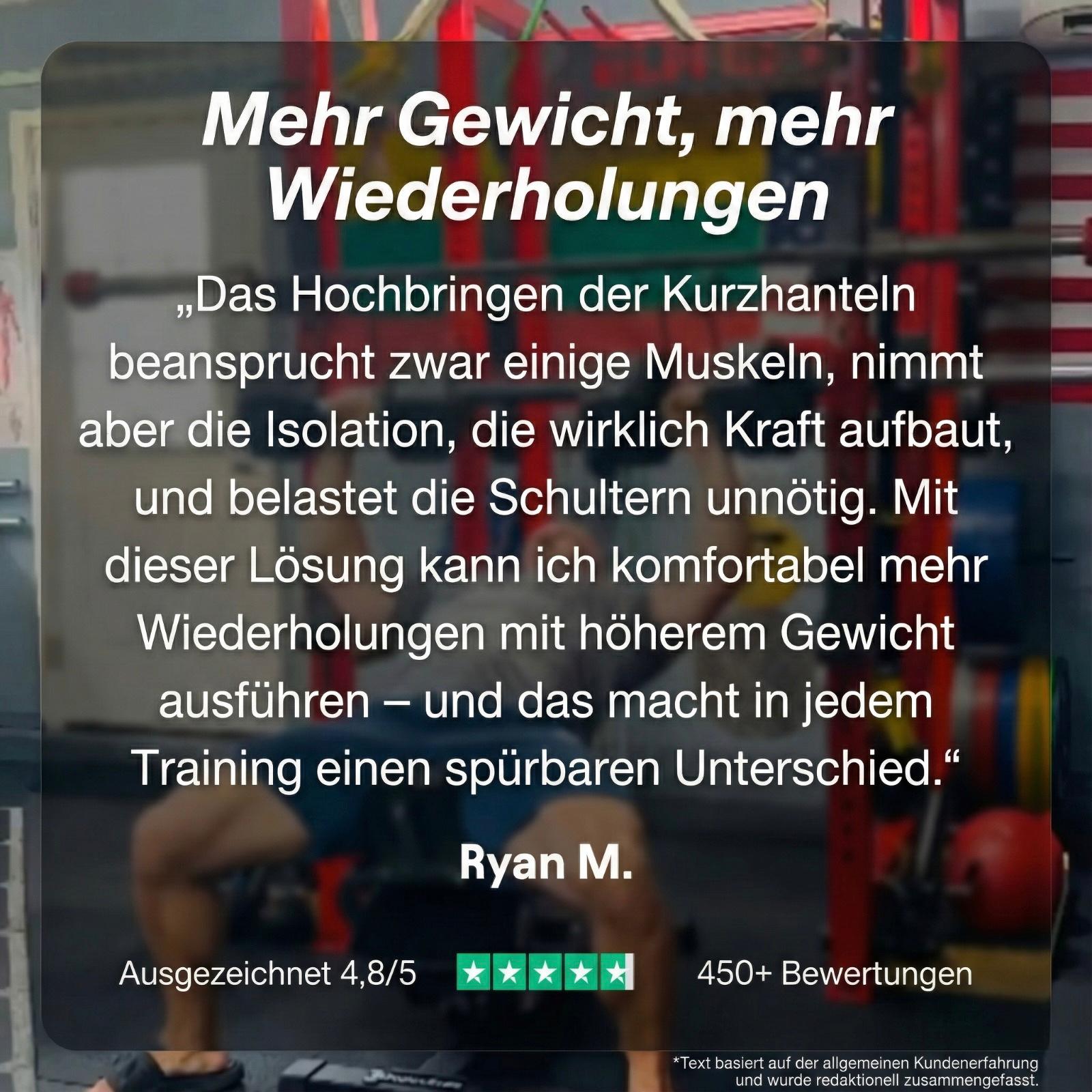 Ermöglicht dir, schwer zu trainieren, ohne dir über die Anhebephase Gedanken machen zu müssen, und schaltet alle Vorteile von schwerer Kurzhantelarbeit frei.